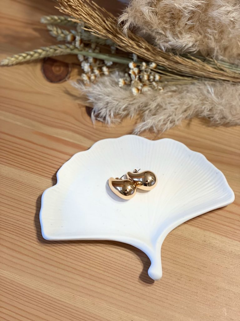 Con líneas suaves y elegantes, esta bandeja con forma de abanico es un detalle sofisticado para organizar y exhibir tus piezas favoritas.