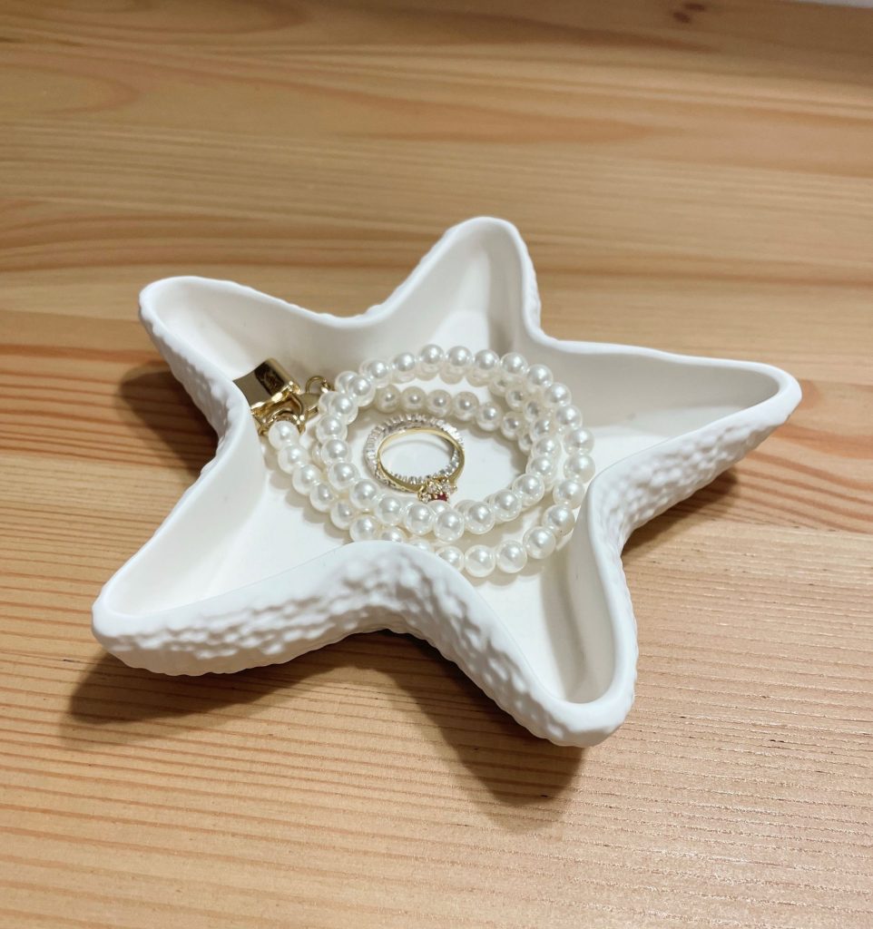Inspirada en el mar, esta bandeja con forma de estrella de mar es perfecta para quienes aman la playa y quieren un toque costero en su decoración.