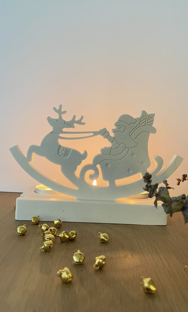 Un candelabro que hace que el trineo de Papá Noel parezca listo para despegar. ¡Encendido, y la Navidad cobra vida!