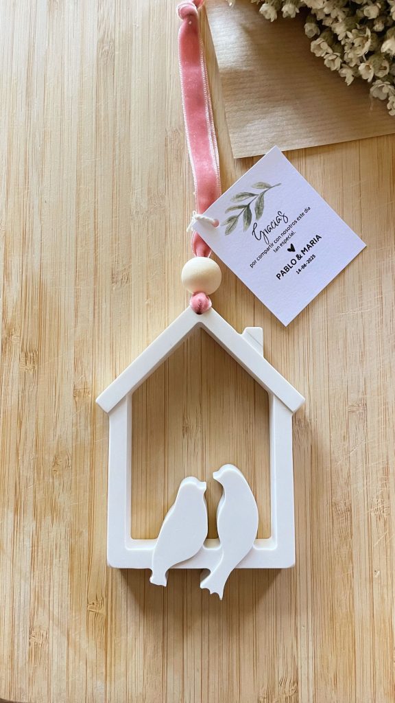 Un pequeño hogar lleno de ternura. Este detalle encantador simboliza alegría, amor y nuevos comienzos. Perfecto para celebrar momentos únicos.