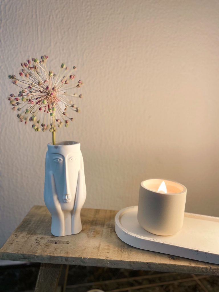 El Jarrón Azteca presenta una forma inspirada en la cara de un azteca, combinando líneas limpias y modernas con una estética llamativa. Su acabado liso en resina acrílica ecológica resalta por su originalidad, convirtiéndolo en una pieza decorativa que captura la atención sin necesidad de adornos excesivos.