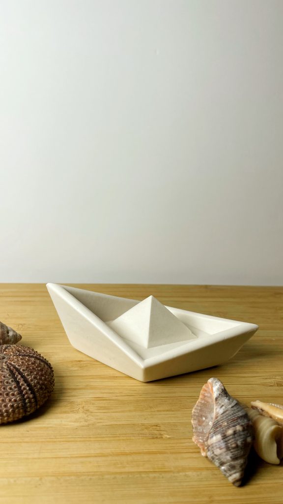 Pisapapeles en forma de Barquito de Papel. Una pieza delicada y simbólica que combina nostalgia y diseño en un objeto único.