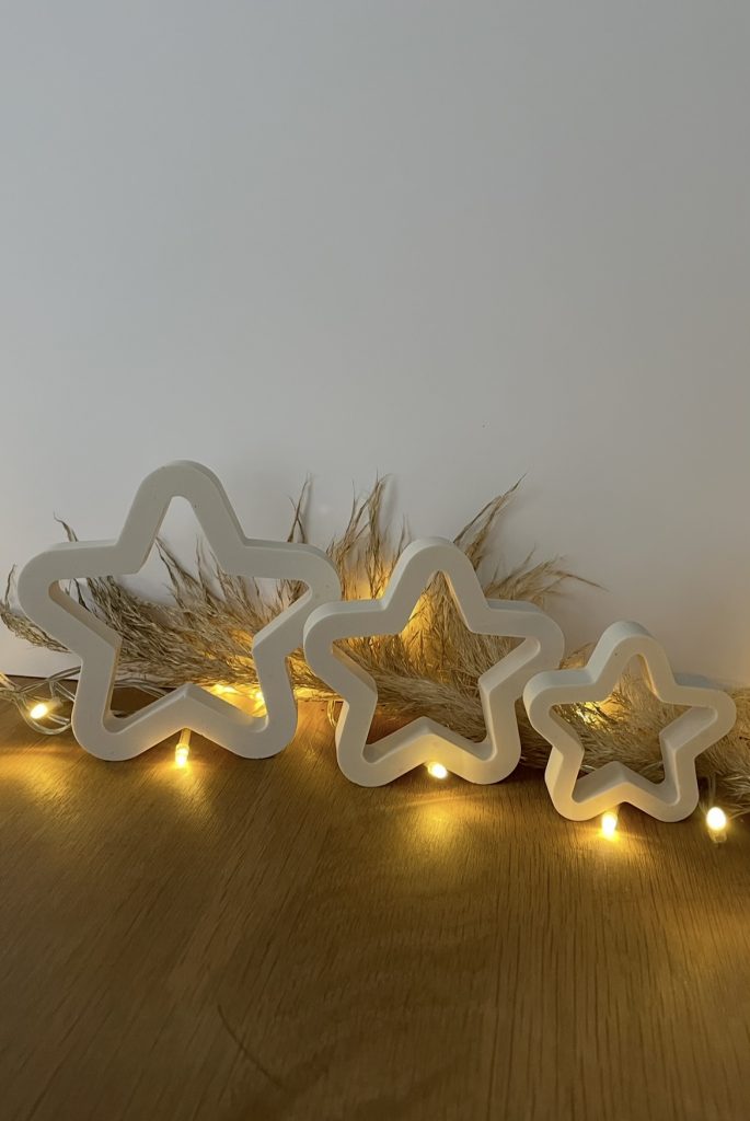 Tres Estrellas que brillan juntas para llenar de luz y magia cualquier rincón. Un detalle sencillo y lleno de encanto.